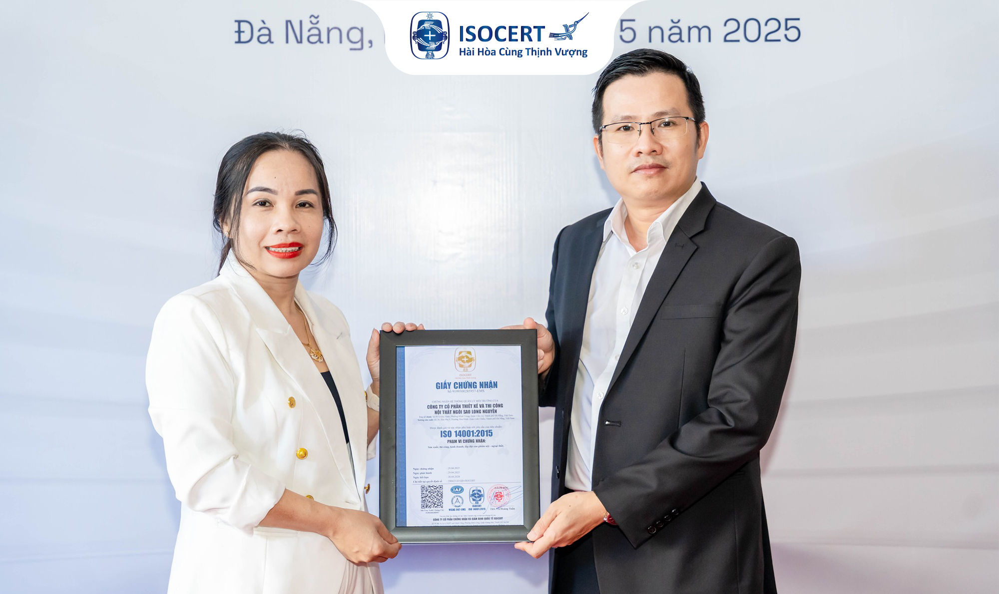 ISOCERT trao chứng nhận ISO 9001, ISO 14001 và ISO 45001 cho công ty Ngôi Sao Long Nguyễn (SACO GROUP)