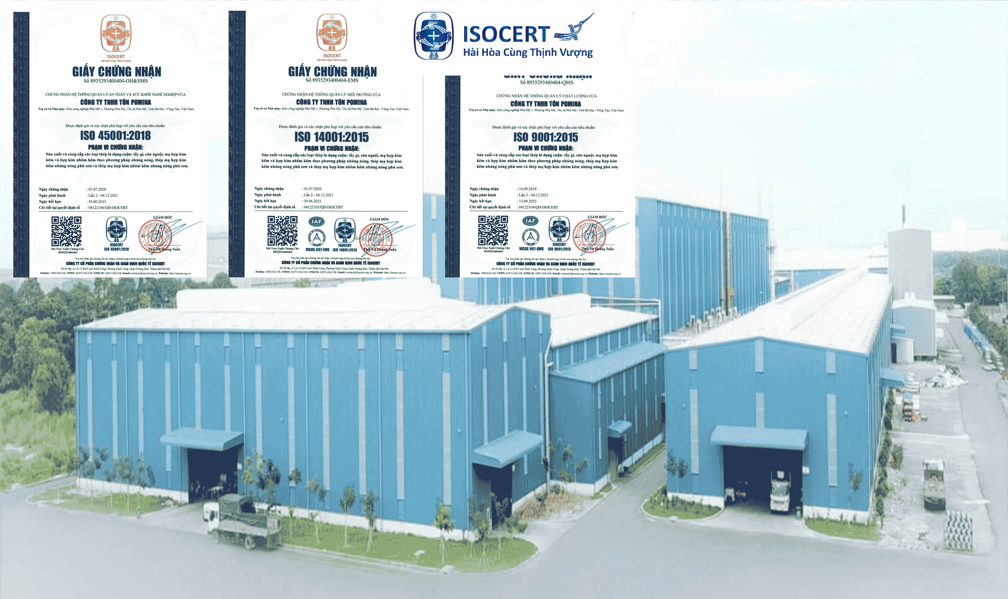 Công ty TNHH Tôn Pomina đạt đồng thời Chứng nhận ISO 9001 - ISO 14001 - ISO 45001