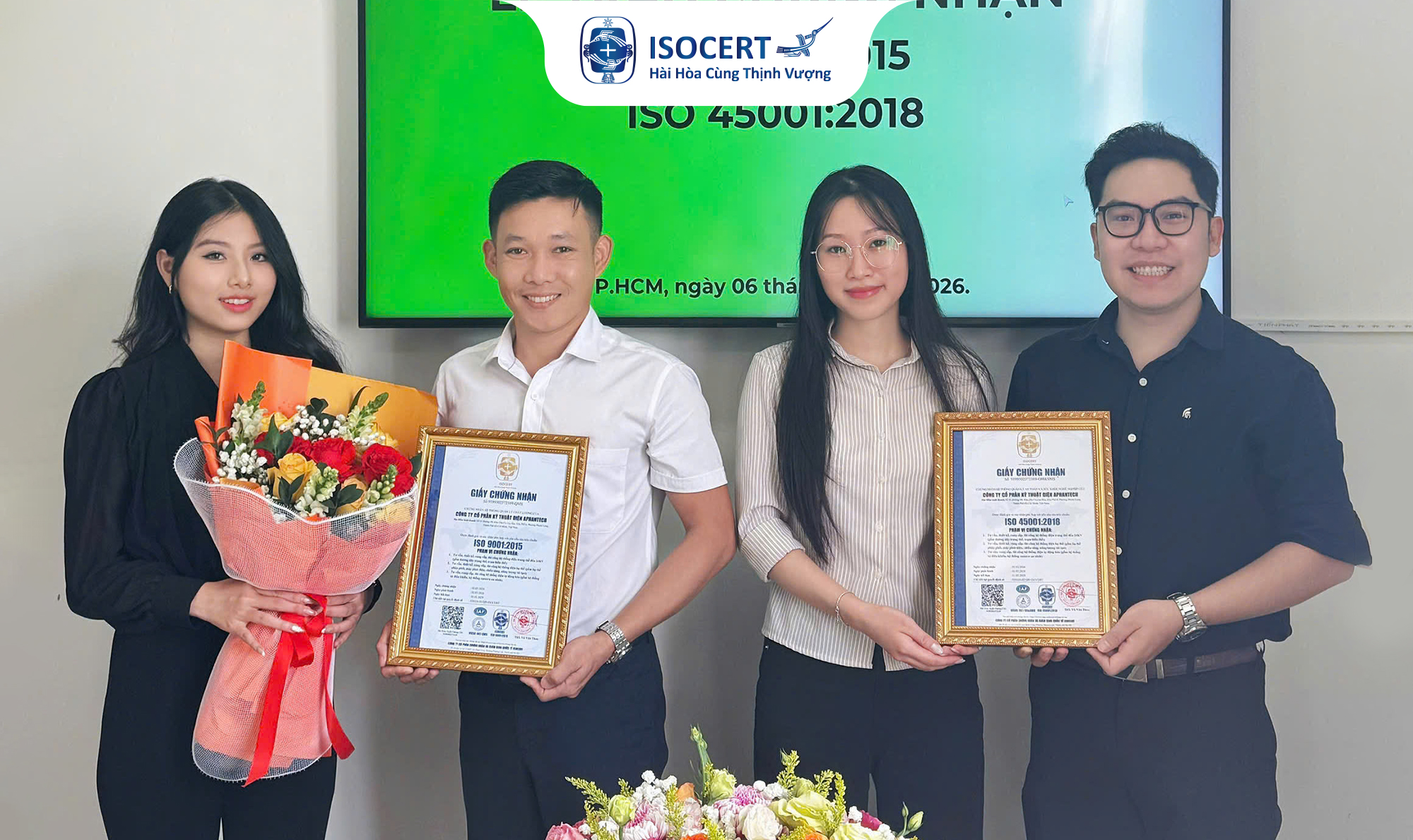 Công ty cổ phần kỹ thuật điện APHANTECH đạt bộ đôi Chứng nhận ISO 9001 - ISO 45001