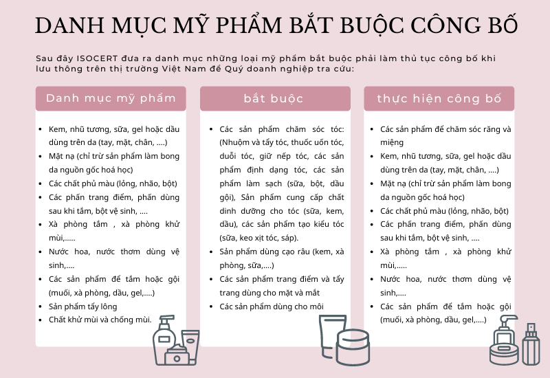 Danh mục mỹ phẩm bắt buộc thực hiện công bố