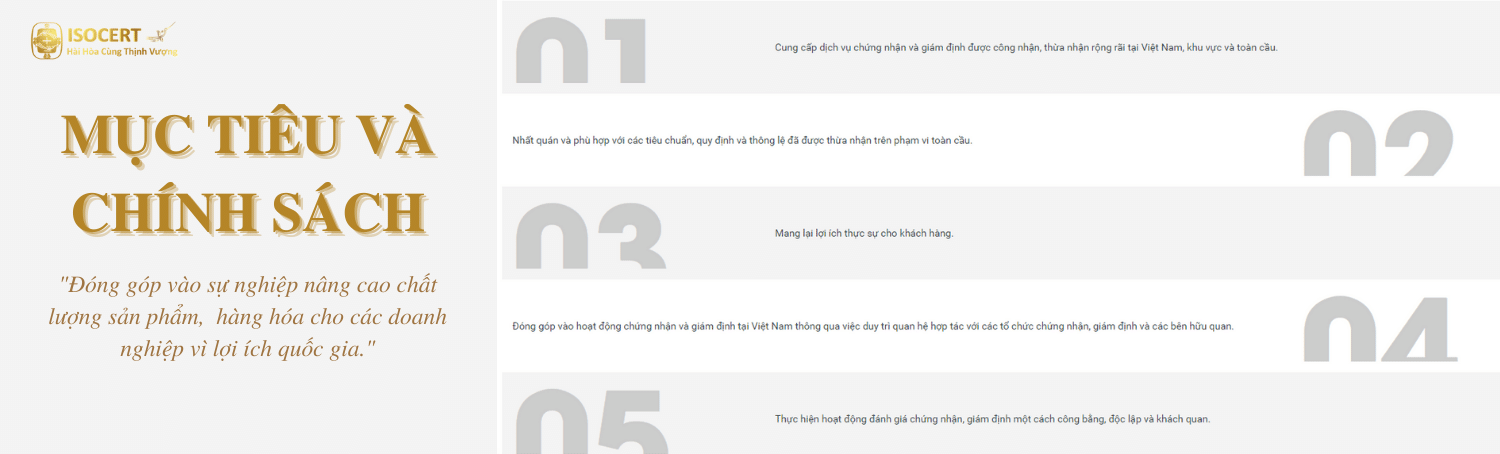 Chúng tôi luôn hướng đến việc cung cấp các dịch vụ theo tiêu chuẩn quốc tế hàng đầu. Tại ISOCERT, chúng tôi không chỉ đơn thuần là một tổ chức chứng nhận, mà còn là đối tác đáng tin cậy của bạn trong việc đảm bảo chất lượng, tuân thủ các tiêu chuẩn quốc tế và thúc đẩy sự phát triển bền vững của bạn. ISOCERT cam kết đồng hành cùng bạn trong hành trình phát triển và nâng cao giá trị của bạn. Chúng tôi xem khách hàng là nguồn cảm hứng và là động lực để không ngừng hoàn thiện dịch vụ của mình. Hãy tin tưởng và hợp tác với ISOCERT để cùng xây dựng một tương lai thành công và bền vững.