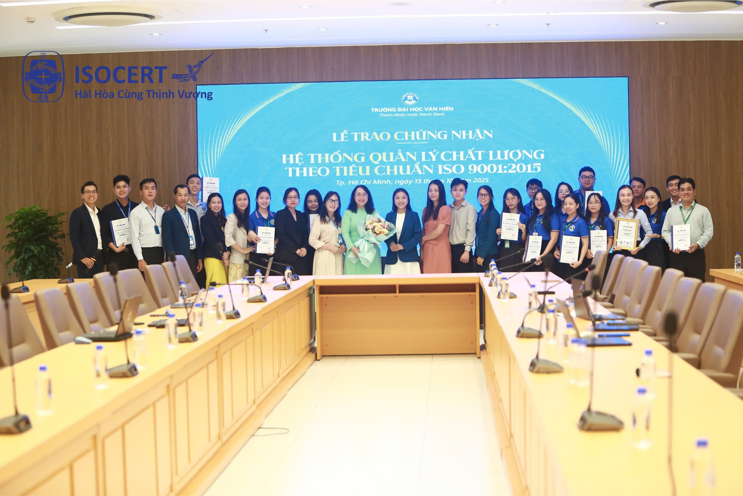 ISOCERT trao chứng nhận ISO 9001:2015 cho Trường Đại học Văn Hiến, khẳng định bước tiến trong quản lý chất lượng và nâng cao trải nghiệm người học.